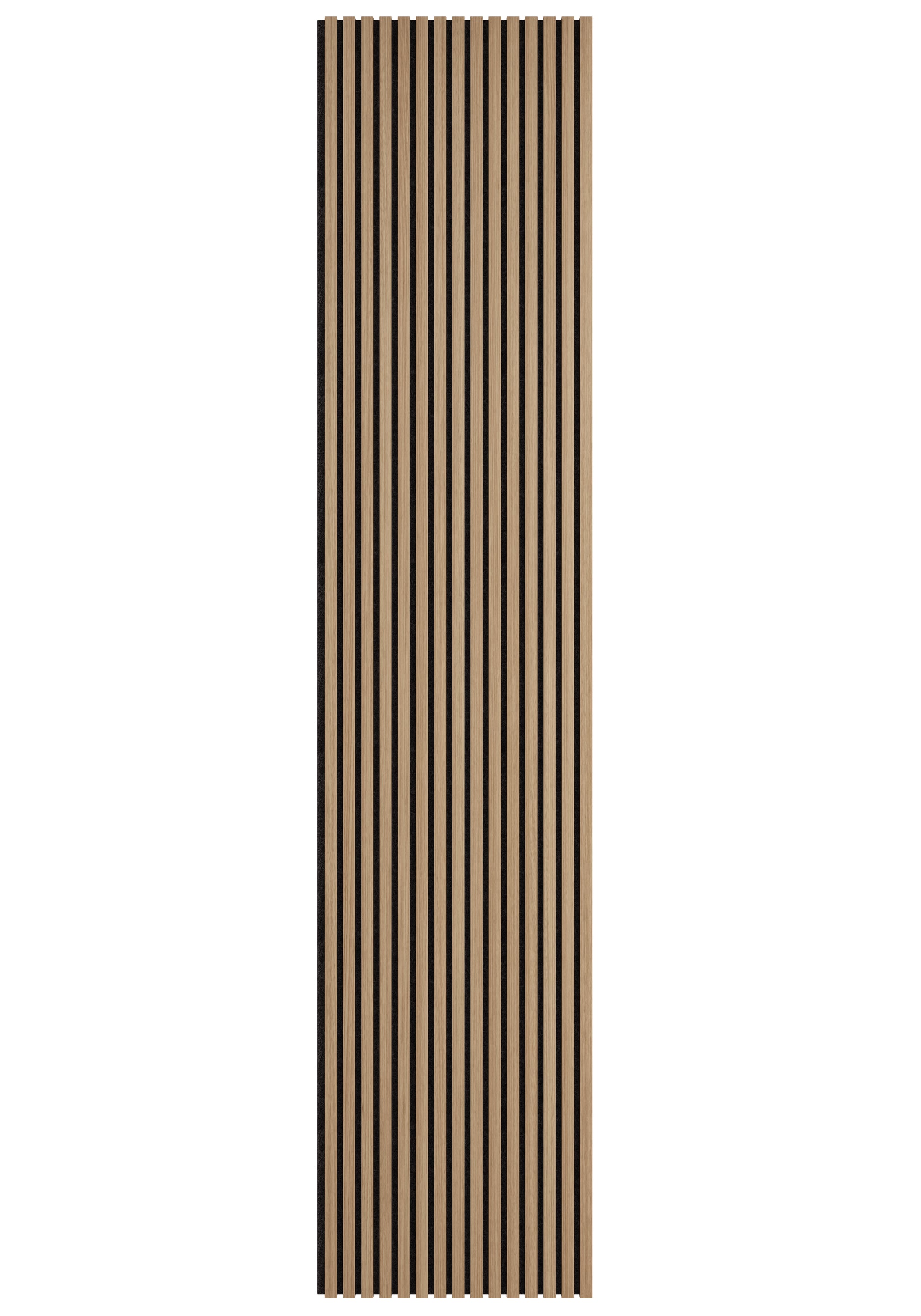 Das Akustikpaneel Teak (270 x 60 cm) besteht aus PET-Filz, MDF und Eichenfurnier in einem warmen Teakton. Diese Wandverkleidung verleiht Räumen eine natürliche Optik und verbessert die Raumakustik. Sie eignet sich sowohl für den professionellen Einsatz als auch für die Selbstmontage. Das Paneel absorbiert Schallwellen effektiv und reduziert Echos, wodurch ein angenehmeres Klangerlebnis entsteht. Es empfiehlt sich besonders für Büros, Konferenzräume und Wohnräume, in denen die Kombination aus der Wärme von Holz und akustischen Eigenschaften gewünscht ist.