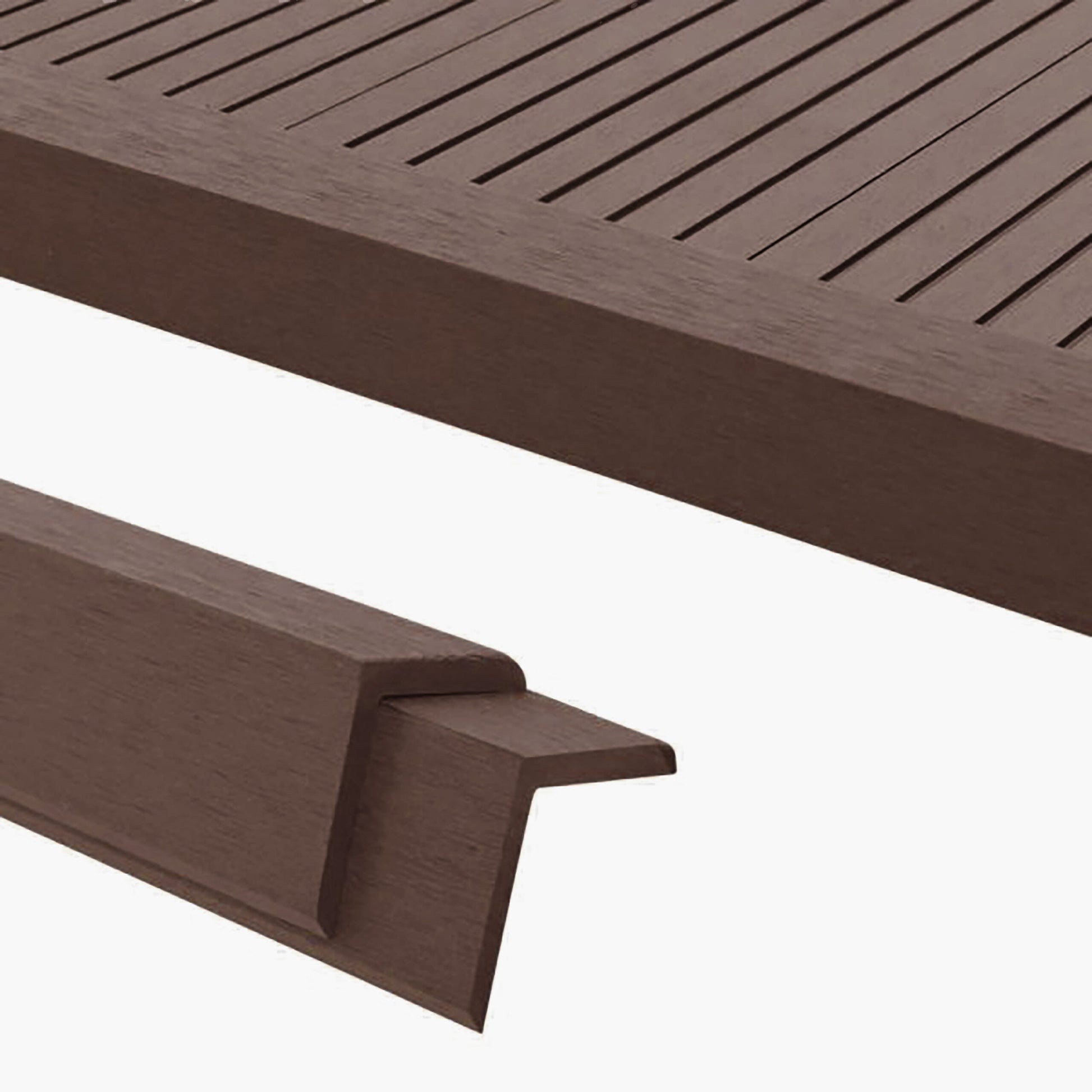 Stvorite savršen završetak za svoj WPC pod uz naše kutne profile! Ovi kutnici nude jednostavno i elegantno rešenje za uredno zatvaranje izloženih rubova podova. L-profili se također mogu koristiti kao rubovi stepenica u kontrastnim bojama, pružajući uočljivu oznaku promjene na rubovima stepenica. Izrađeni od visokokvalitetnog drveno-plastičnog kompozita (WPC), ovi kutni profili su otporni na vodu i vremenske utjecaje. WPC materijal kombinira drvo i plastiku.